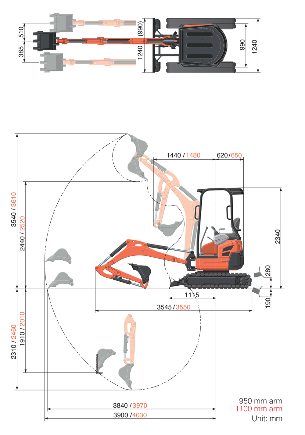 Les mini-pelles peuvent être utilisées dans des situations où l’espace est limité et elles sont idéales pour tout petit travail d’excavation, tandis que nos plus grandes pelles peuvent gérer facilement des travaux plus importants.